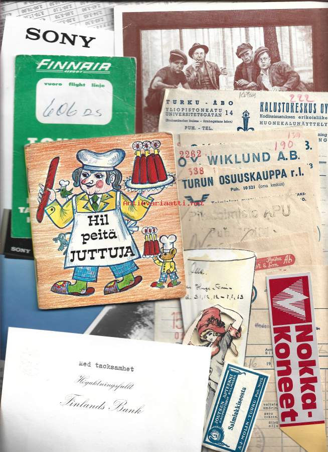 Sekal erä valokuvia, lomakkeita, tarroja yms n 15 kpl