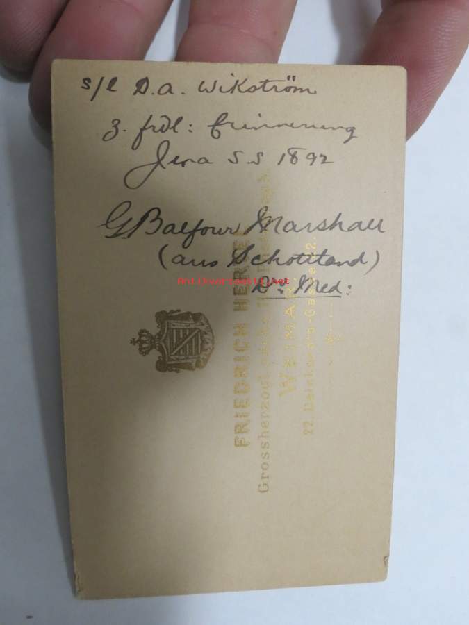 Marshall Balfour (Scotland), Jenan yliopisto (Universität Jena) 1892, kuva omistettu suomalaiselle D.A. Wikströmille -visiittikorttivalokuva / carte de visite / cdv
