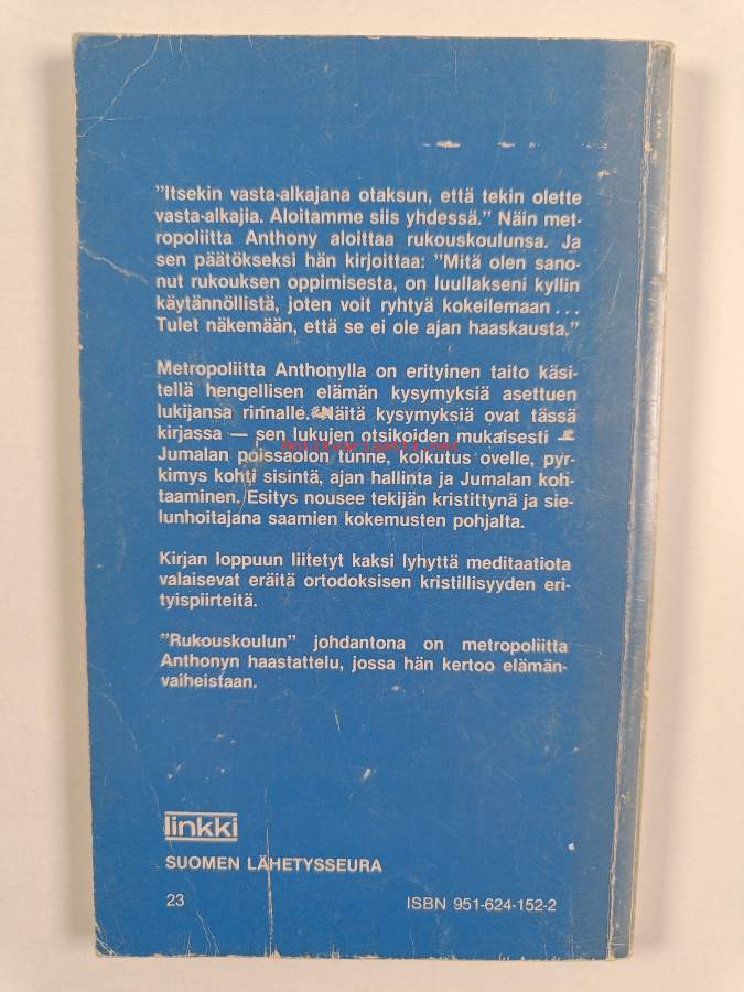 Muu(t) tekijä(t): Matti Sidoroff, Pirkko PullinenMerkinnät: omistajamerkintäSarja: Linkki-sarja 18Alkuteos: School for prayer