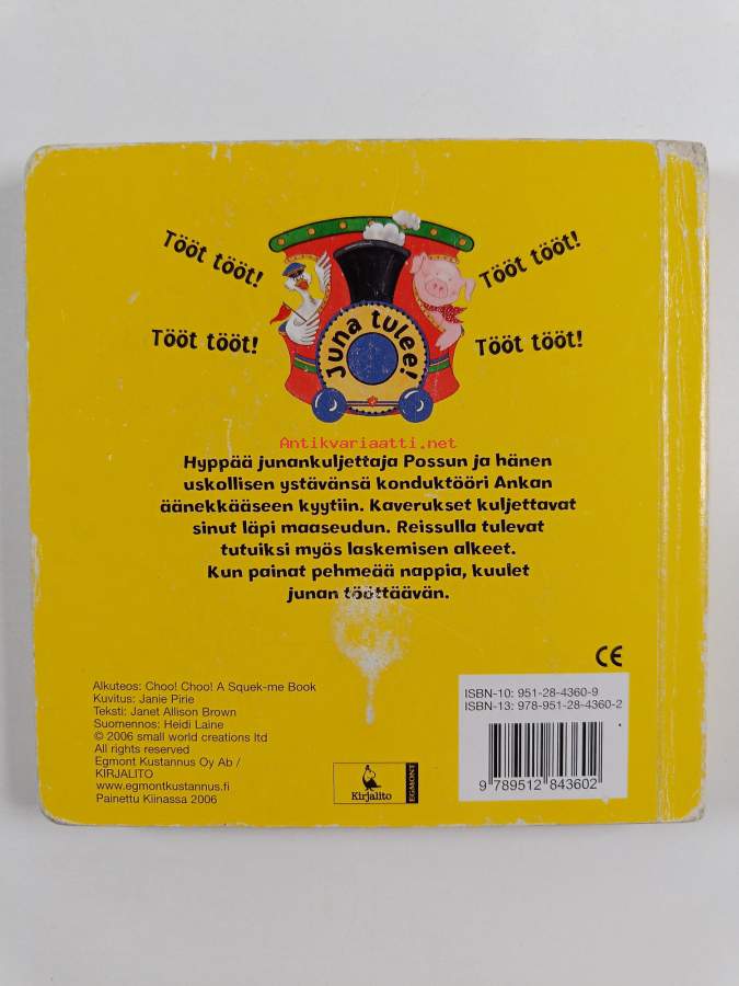 Muu(t) tekijä(t): Heidi Laine, Janet Allison BrownAlkuteos: Choo! Choo! : a squek-me-bookAsiasanat: käännökset, suomenkielinen kirjallisuus, kuvakirjat, katselukirjat