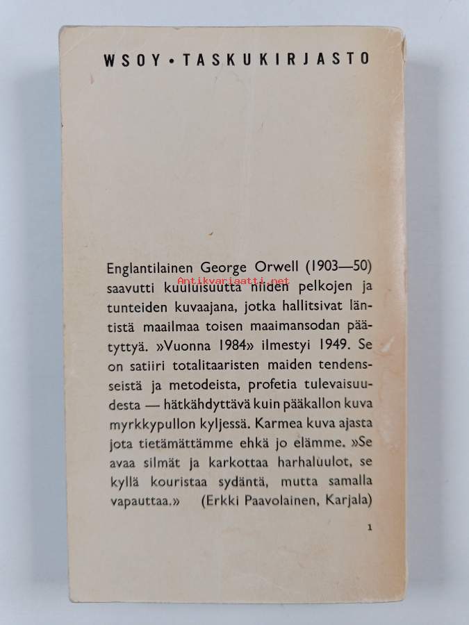 Tyydyttävä. Tarkempi kuntoluokka: K2- ; Pientä kulumaa, pientä taitejälkeä kansissa, hieman repeämää reunoilla ja kulmissa, selkämyksessä hieman vinoutta, muutamalla sivulla merkintää, selkämyksessä lukutaittumaa.