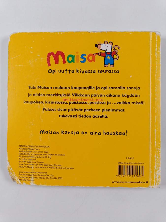 Muu(t) tekijä(t): Anneli HeimonenSarja: Maisan ensisanatAlkuteos: Maisy's townAsiasanat: arkielämä, kirjastot, puistot, myymälät, kahvilat, posti, parturi-kampaamot