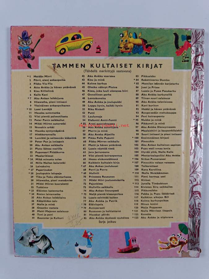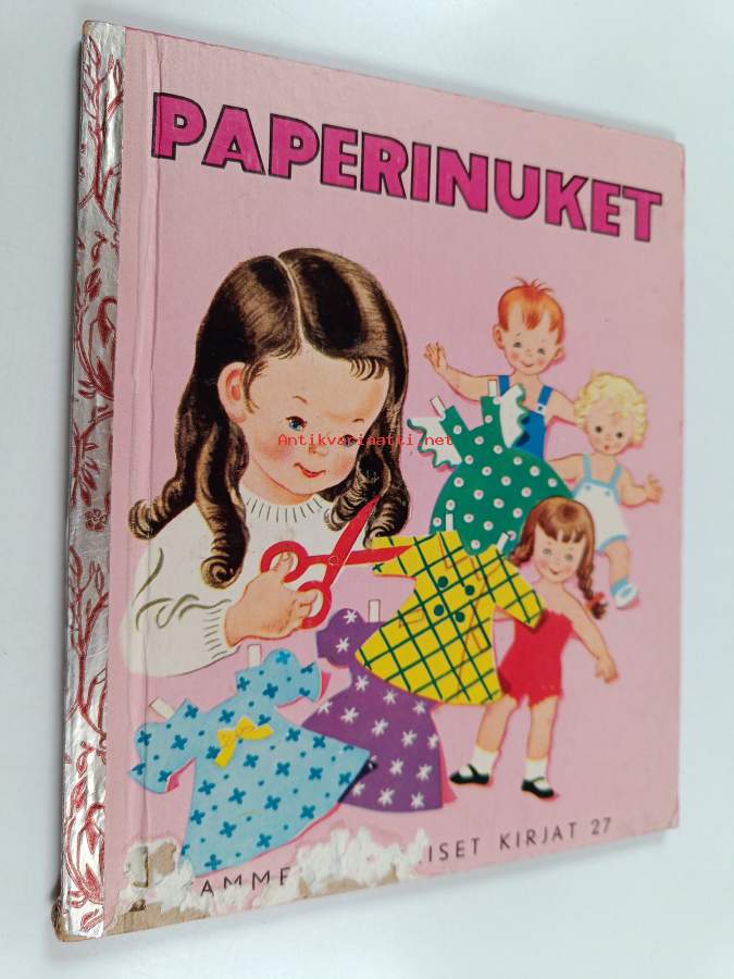 Tyydyttävä. Tarkempi kuntoluokka: K2+ ; Pientä kulumaa kansissa, pienoista repeämää selkämyksen päissä. nuket puuttuvat