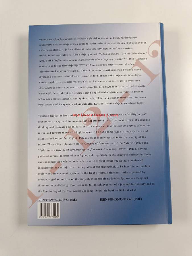 Koko nimi: Maksukykyyn suhteutettu verotus - oikeudenmukaisempi yhteiskunta - miksi? : miten oikeus ja oikeudenmukaisuus toteuvat suomalaisessa verotuksessa ja mihin se johtaa = Ability-to-pay taxation for a more just society - why? : how far are justice and fairnesMuu(t) tekijä(t): Malcolm HicksAsiasanat: verotus, yhteiskuntapolitiikka, oikeudenmukaisuus, veropolitiikka, tulot, maksukyky