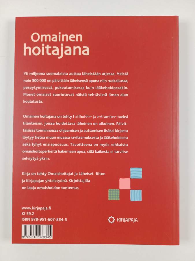 Muu(t) tekijä(t): Merja Salanko-Vuorela, Merja Kaivolainen ym.Asiasanat: ensiapu, liikunta, ravitsemus, läheiset, hoitotyö, lääkehoito, jaksaminen, unihäiriöt, käyttäytymishäiriöt, pukeutuminen, lepo, terveyspalvelut, terveydenhuolto, omaiset, ikääntyneet, sairaanhoito, kotihoito, omaishoito, henkilökohtainen hygienia, liikkuminen, ruokailu, menetelmät, apuvälineet, hygienia, omaisjärjestöt, sosiaalinen tuki, omaishoitajat, uni (lepotila), First Aid, Home Nursing, Activities of Daily Living, Caregivers
