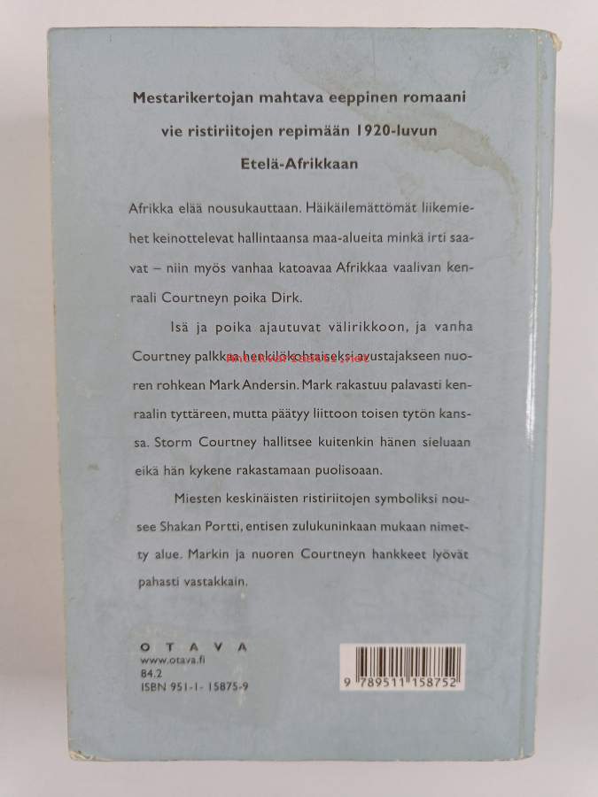 Hyvä. Tarkempi kuntoluokka: K3- ; Pientä kulumaa, hieman taitejälkeä kansissa, pienoista rispaantumaa kulmissa, selkämyksessä yksi lukutaite