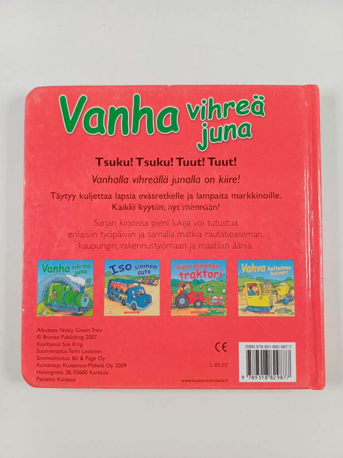 Muu(t) tekijä(t): Terhi LeskinenSarja: Puuhaa ja ääniäAlkuteos: Noisy green trainAsiasanat: lastenkirjallisuus, junat, kuvakirjat, paksulehtiset kirjat