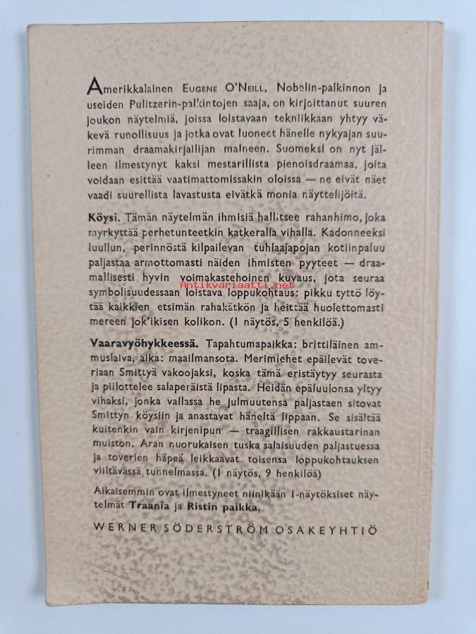 Tyydyttävä. Tarkempi kuntoluokka: K2+ ; Jonkin verran kulumaa kansissa, pienoista kolhua kansissa, aivan pienoista repeämää selkämyksen päissä, selkämyksessä lukutaittumaa, muutamalla sivulla merkintää