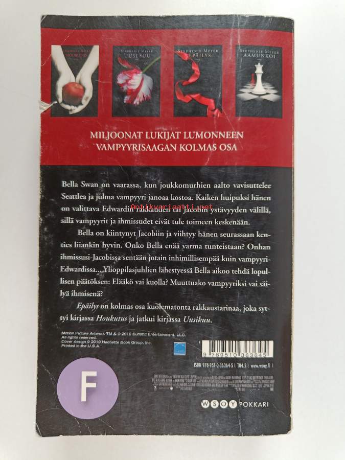 Muu(t) tekijä(t): Pirkko (suom.) BiströmSarja: Twilight 3Alkuteos: EclipseAsiasanat: vampyyrit