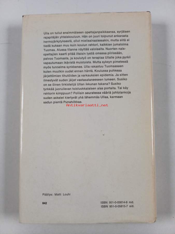 Hyvä. Hieman kulumaa selkämyksen päissä, selkämyksessä vinoutta. Kansipaperin kunto: jonkin verran kulumaa/pienoisia repeämiä