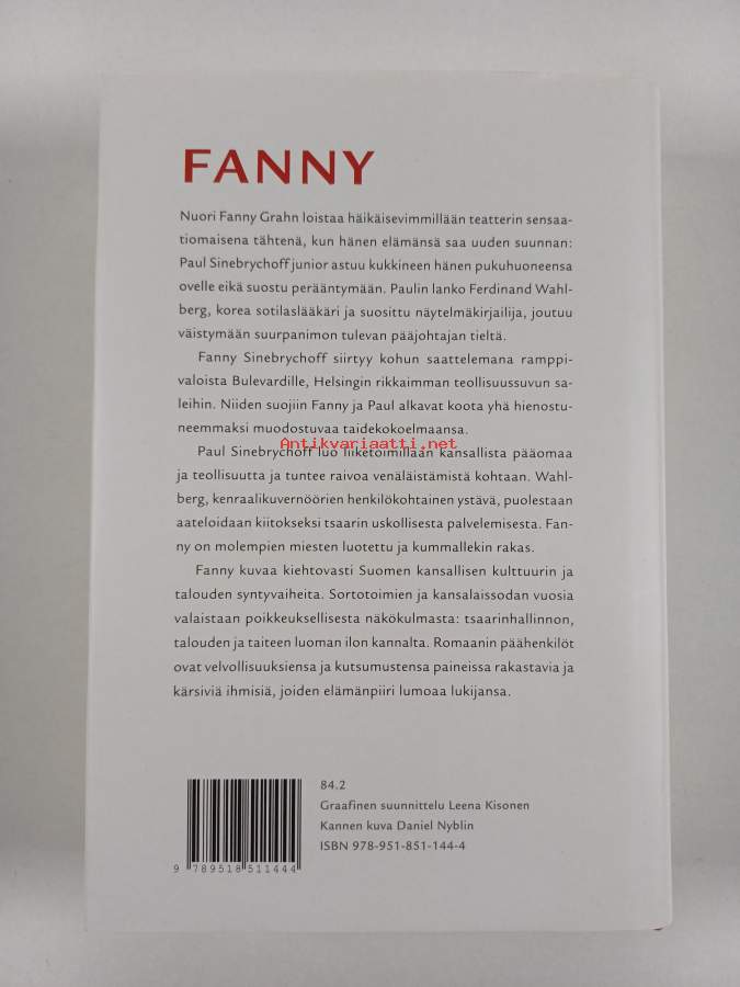 Fanny, 2008. Kirja kuvaa Suomen kansallisen kulttuurin ja talouden syntyvaiheita, sortotoimia ja kansalaissodan vuosia ja on myös perhesaaga Sinebrychoffin suvusta