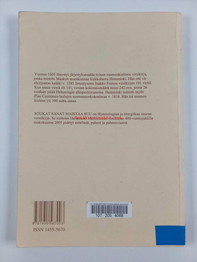 Soukat sanat maistaa suu : Hemminki Maskulaisen virsikirja 400 vuotta