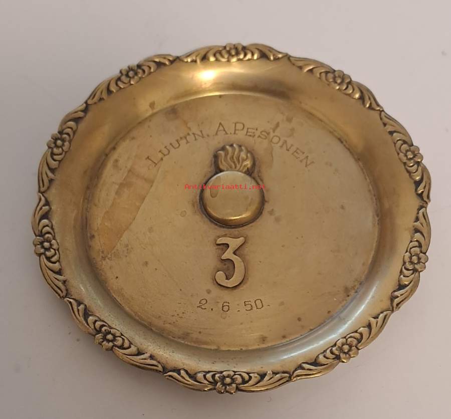 Muistolautanen Kenttätykistön aselajimerkki ja 3 kaiverrus Luutn... 1950