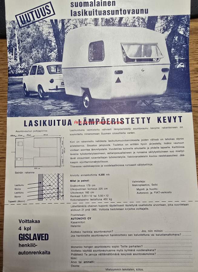 makroplastics asuntovaunu myyntiesite 1966