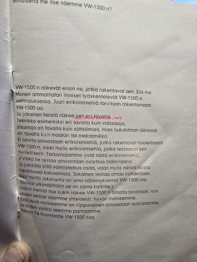 koko 15 x 21 cm. kertomus VW 1500 autosta.
