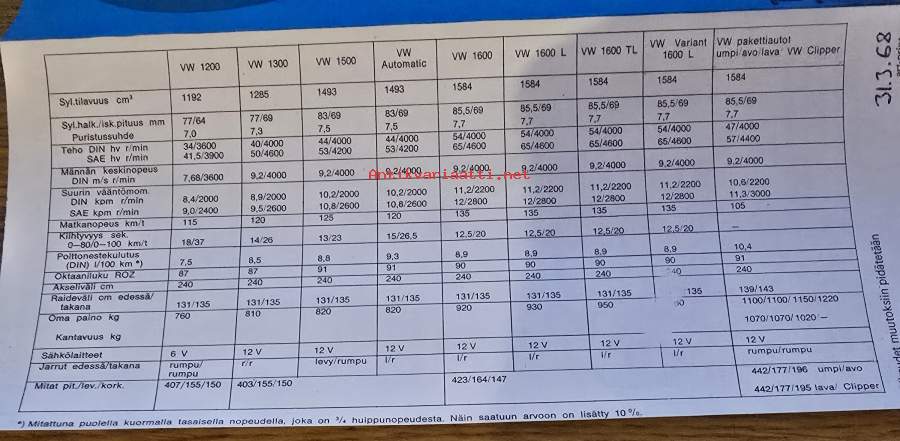 Volkswagen automallit 1968