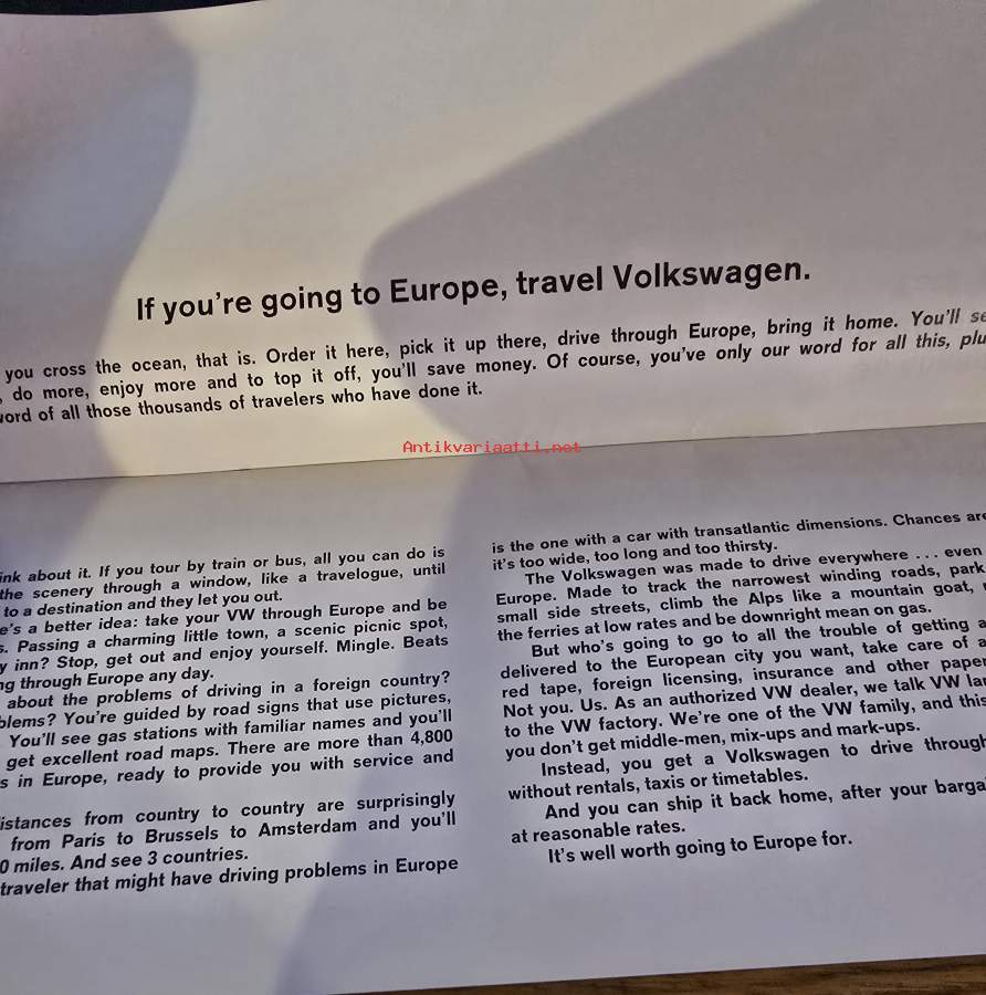 vw tourist car delivery programme. matkailuohjelma eurooppaan. 1/67