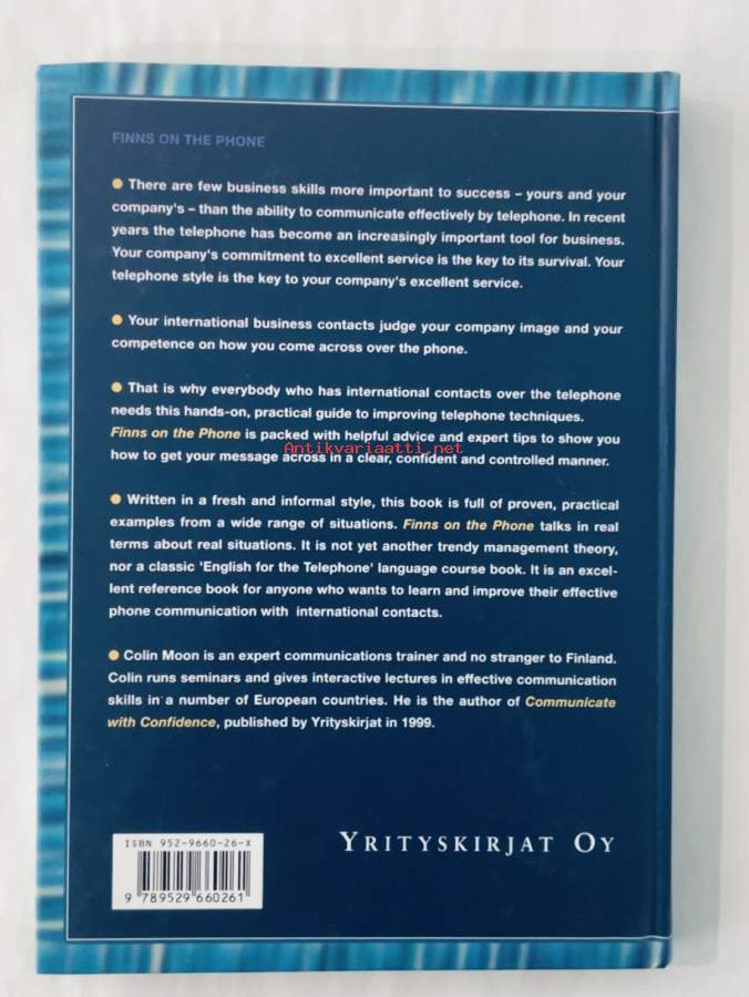 "Finns on the Phone" on Colin Moonin kirjoittama kirja, joka opettaa suomalaisille, kuinka parantaa puhelinviestintää englanniksi kansainvälisessä liiketoiminnassa. Se tarjoaa erilaisia tekniikoita, jotka auttavat lisäämään tehokkuutta ja kulttuurista ymmärrystä puhelinkeskusteluissa. Kirja on hyödyllinen opas kaikille, jotka haluavat kehittää englanninkielistä liiketoimintaviestintää erityisesti puhelimen välityksellä.