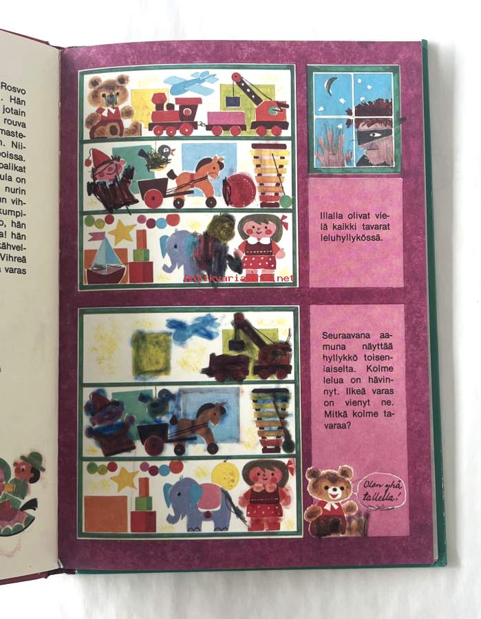Kirjan arvoitukset harjaannuttavat lapsenne huomiointi- ja keskittymiskykyä. Tarinoiden sisältö on hauska ja leikkisä, joka kehittää lasta myös henkisesti.