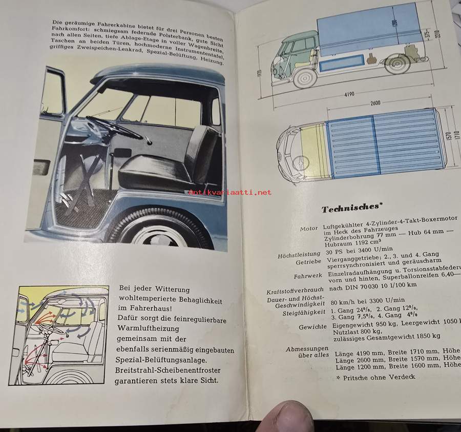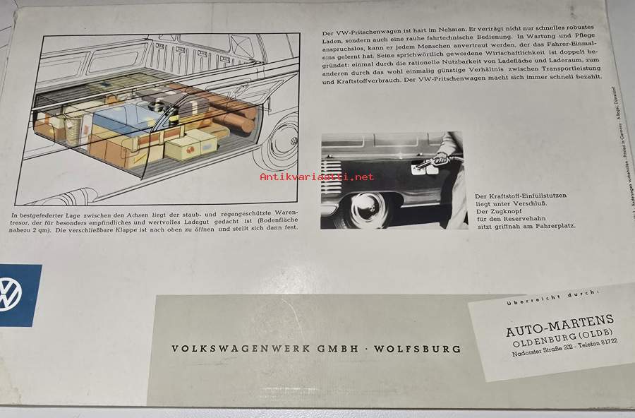 VW -pritsenwagen 1958? brochure. myyntiesite