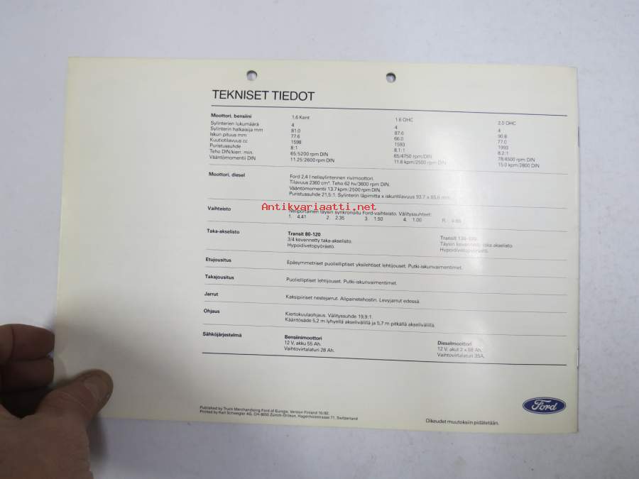 Ford Transit 1992 -myyntiesite / brochure