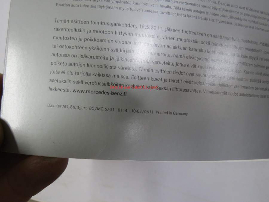 Mercedes-Benz E-sarjan sedan ja farmari 2011 -myyntiesite, kirjan muotoinen