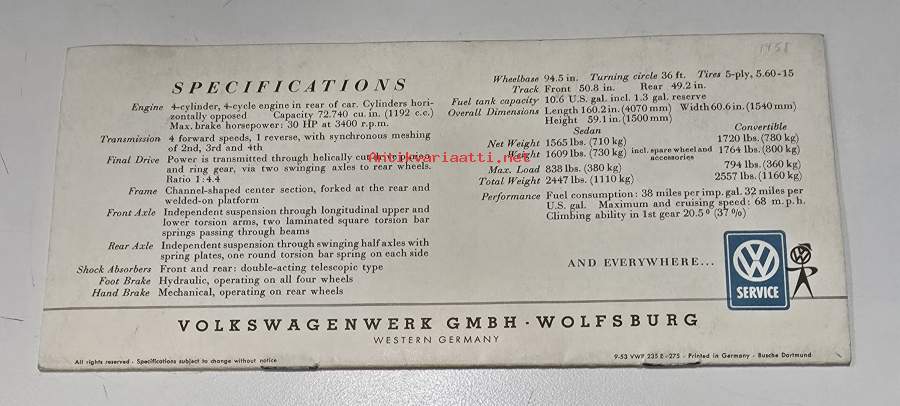 VW kupla 9/ 1953 . myyntiesite.