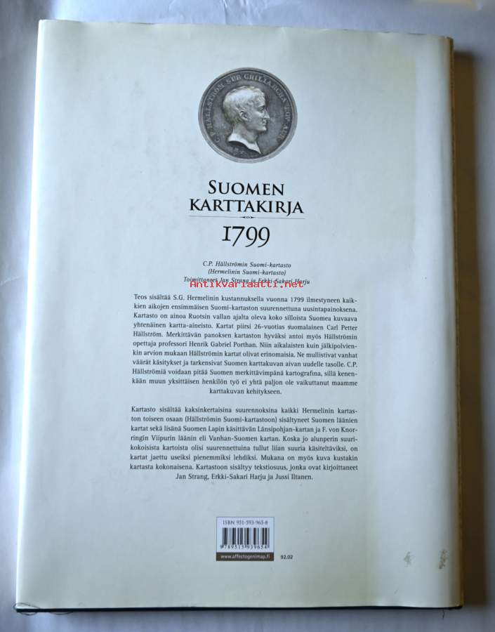 Suurennettu uusintapainos C.G. Hermelinin kustannuksella vuonna 1799 ilmestyneestä kaikkien aikojen ensimmäisestä Suomi-kartastosta. Kartasto on ainoa Ruotsin vallan ajalta oleva Suomea kuvaava yhtenäinen kartta-aineisto. Kartat piirsi 25-vuotias suomalaisnuorukainen Carl Petter Hällström. Niin aikalaisten kuin jälkipolvienkin arvion mukaan Hällströmin kartat olivat hyviä. Ne mullistivat vanhat väärät käsitykset ja tarkensivat Suomen karttakuvan aivan uudelle tasolle. Kartat ovat huolellisesti ja kauniisti piirretyt, tarkat ja aikansa luotettavimmat. Nyt julkaistava uusintapainos sisältää kaksinkertaisina suurennoksina kaikki Hällströmin atlakseen sisältyneet Suomen läänien kartat sekä lisänä Suomen Lapin käsittävän Länsipohjan kartan. Alkuperäisteoksen suuret lehdet on jaettu useiksi pienemmiksi lehdiksi. Mukana on myös kuva kustakin kartasta kokonaisena. Kartastoon sisältyy tekstiosuus, jonka on kirjoittanut karttahistorioitsija Jan Strang. Kartaston on toimittanut Erkki-Sakari Harju. Todella hieno lahjatuote, joka sopii erinomaisesti myös sukututkimusta tekeville!