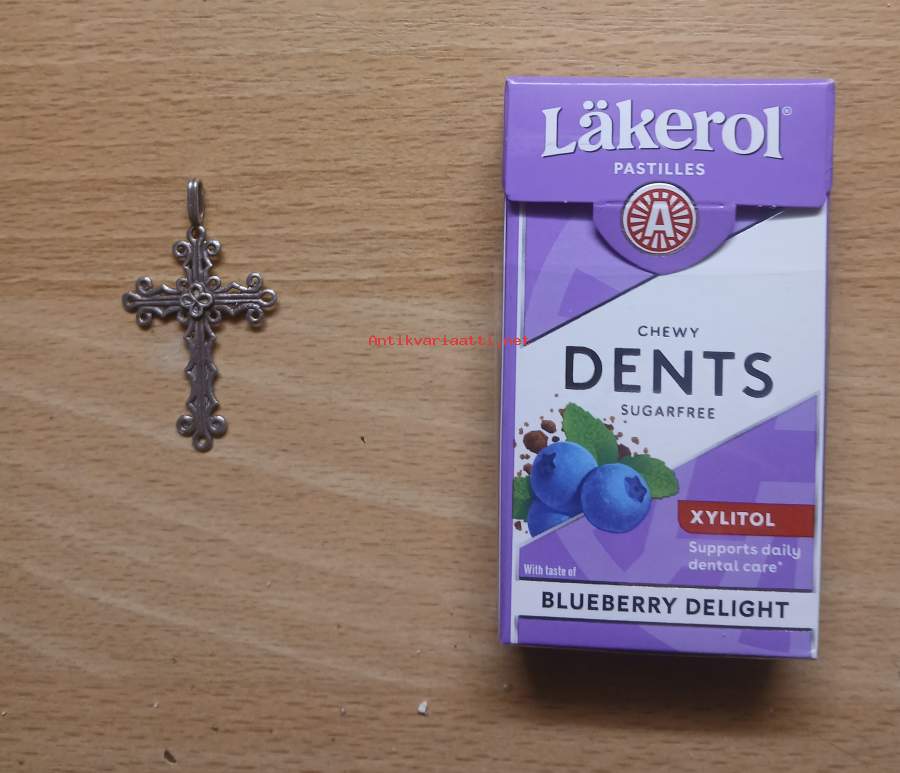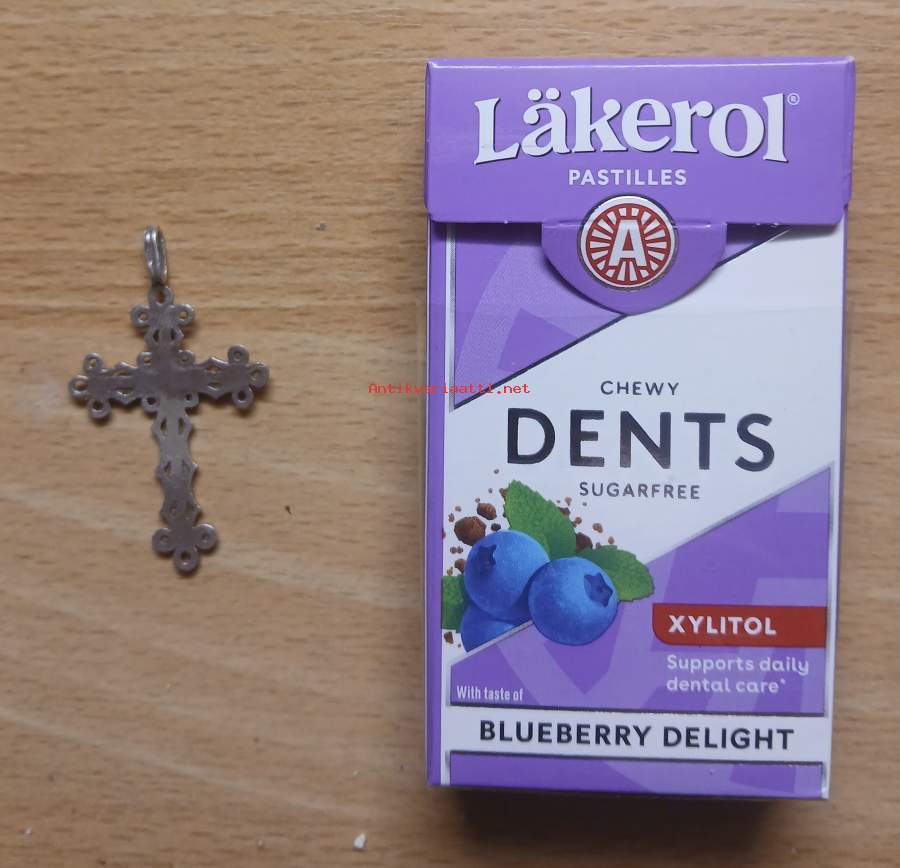 Vanha hopeinen ristiriipus. Leima 830, paino noin 3 grammaa.