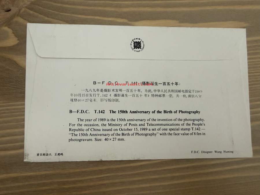 Kiina 16.10.1989 - T. 142 The 150th Anniversary of the Birth of Photography - FDC / Ensipäivänkuori