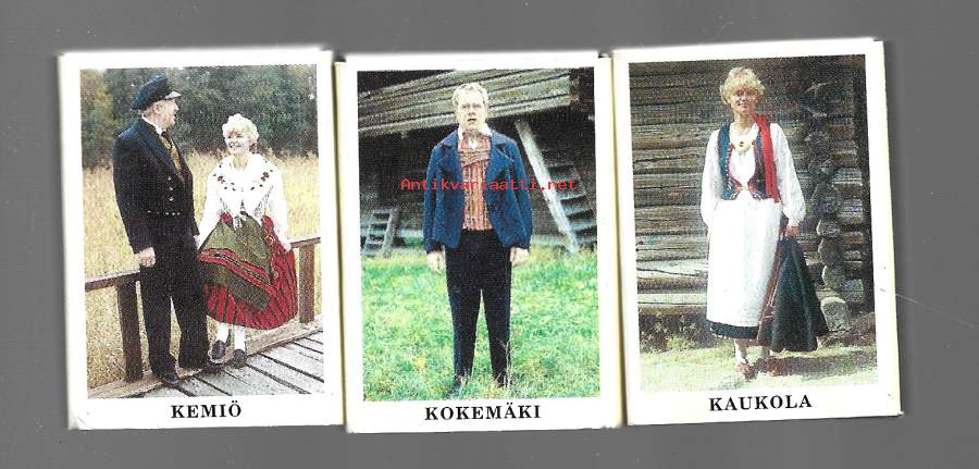 Kansallispuku Kaukola, Kemiö, Kokemäki - tulitikkuaski, tulitikkurasia 3 eril