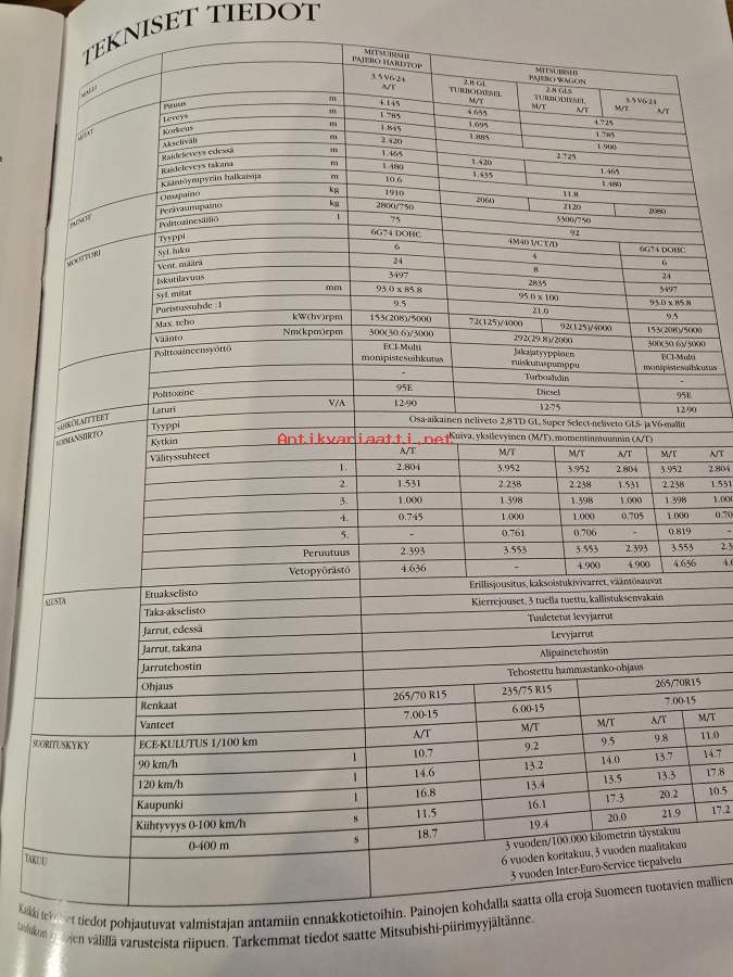 Myyntiesite: Mitsubishi Calant. Sivuja 22.