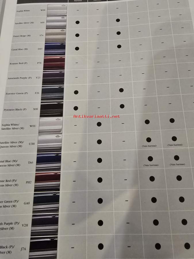 Mitsubishi Lancer malli- ja värikartta