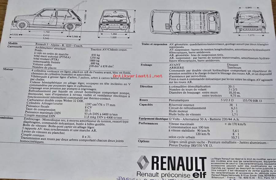Renault esitteet :Renault Megane 6-sivua, Renault Espace 5-sivua, Renaultit 9 ja 11, 5- sivua Renault Laguna 9-sivua. Selostukset, kuvat, tekniset tiedot