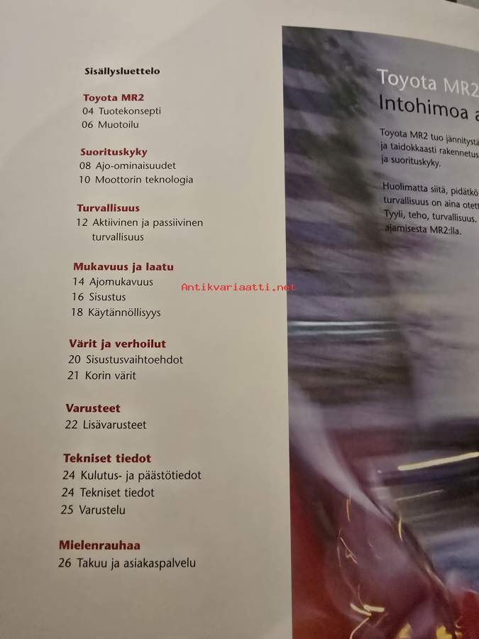 toyota MR 2 myyntiesite 05 / 04