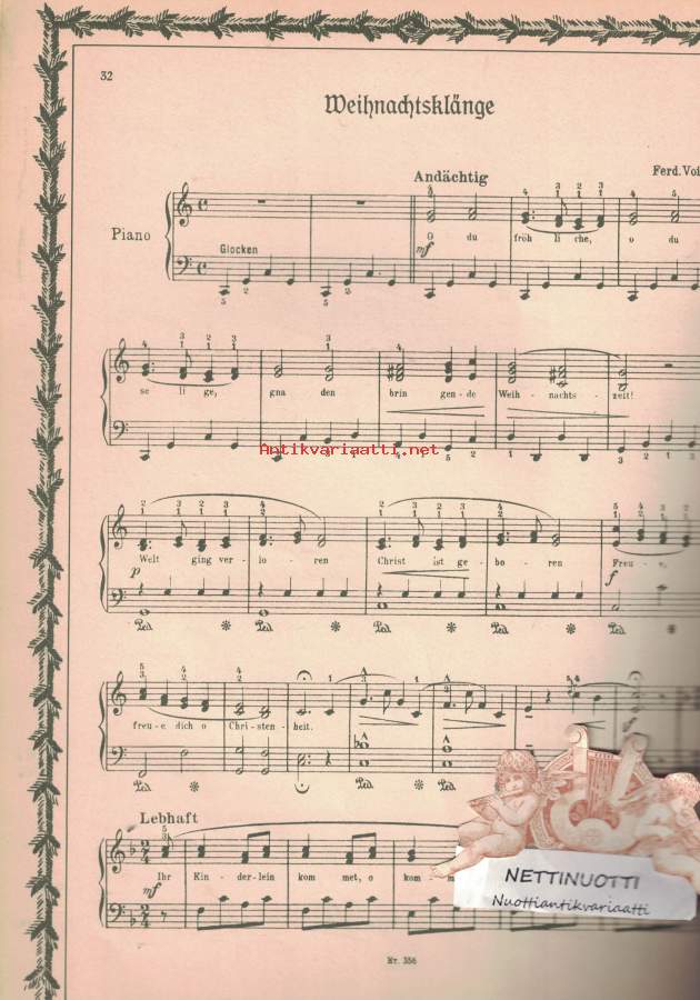 InhaltO Du FroehlicheO TannenbaumAlle Jahre WiederAm Weihnachtsbaum Die Lichter BrennenEs Ist Ein Ros' EntsprungenIhr Kinderlein KommetStille Nacht Heilige NachtHeilige NachtDer ChristbaumMorgen Kinder Wird'S Was Geben (Version 2)Herbei O Ihr GlaeubigenSuesser Die Glocken Nie KlingenIhr Hirten ErwachtTauet Himmel Den GerechtenDu Lieber Heil'Ger Frommer ChristKommet Ihr HirtenTochter Zion Freue DichLobt Gott Ihr ChristenDies Ist Der TagVom Himmel HochDes Jahres Letzte StundeFriede Auf ErdenWeihnachtenWeihnachtsklaengeWeihnachtsliederkranzWeihnachtsmarsch 4msWeihnachtsklaenge 4ms - Suuri Helposti kuori