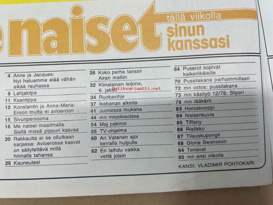 Me Naiset 1978 nr 12 (23.3.), Anne ja Jacques, sivun persoona Anneli Sari, Aira Samulin, tässäkö Euroopan kauneimmat, Ari Vatanen