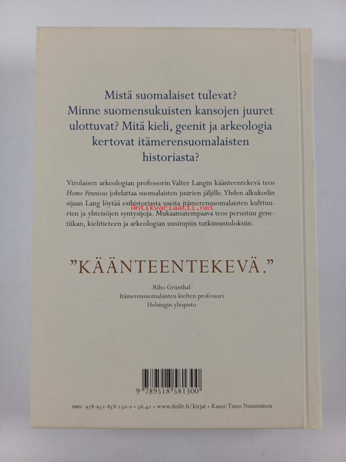 Alkuteos: Läänemeresoome tulemisedAsiasanat: suomen kieli, esihistoria, muinaisjäännökset, suomalaiset, keramiikka, teoriat, arkeologia, asutushistoria, tutkimushistoria, rautakausi, alkuperä, geenit, tutkimusmenetelmät, kielitiede, pronssikausi, itämerensuomalaiset kansat, etnohistoria, populaatiogenetiikka, muinais-DNA