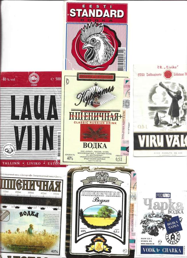 Vodka ja viina 7 kpl erä - viinaetiketti