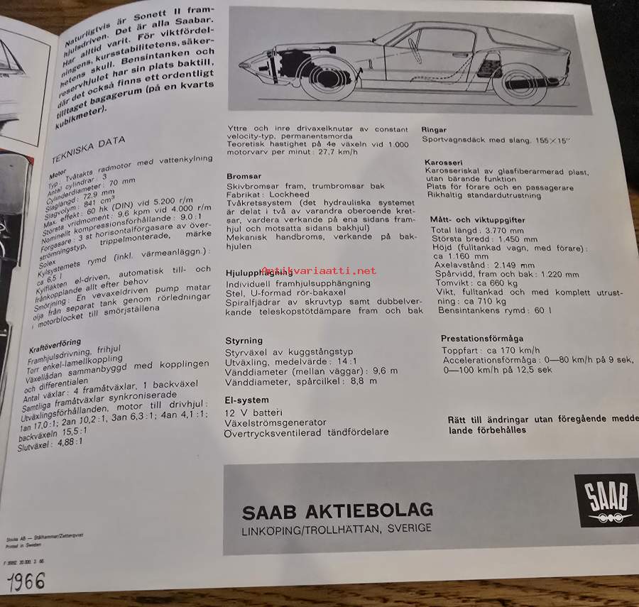Saab Sonett II v4. 3/ 66 myyntiesite