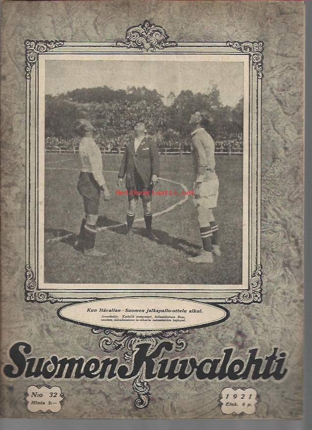 Suomen Kuvalehti 1921 nr 32, kansikuva Kun Itävallan-Suomen jalkapallo-ottelu alkoi, Unkarin edustus Suomessa, Herraskartanoittemme vanhoja kalleuksa, ym.