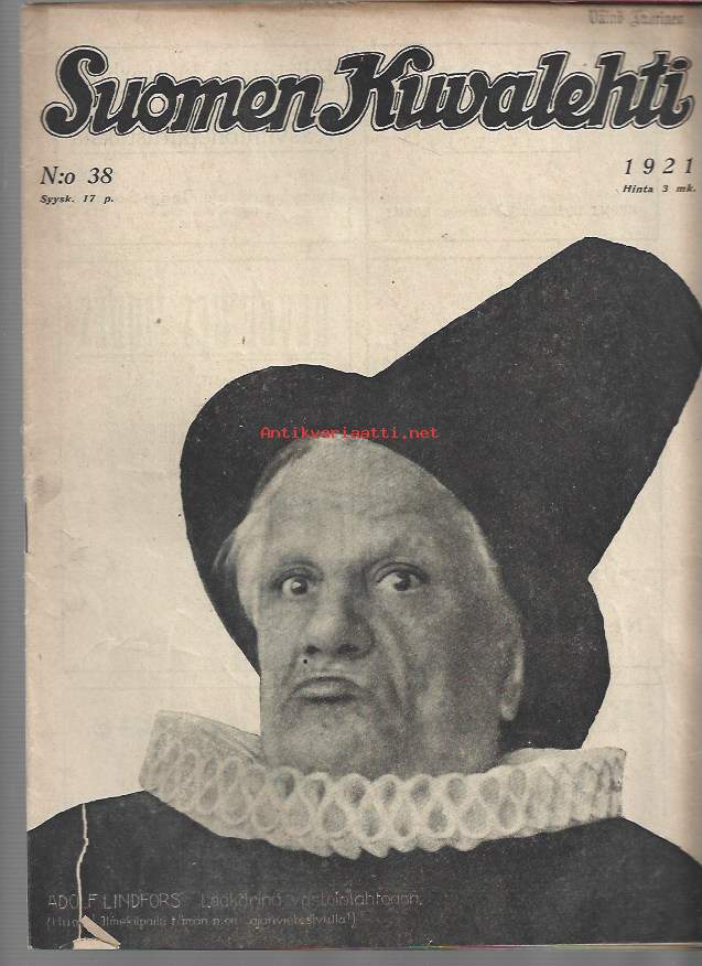 Suomen Kuvalehti 1921 nr 38, kansikuva Adolf Lindfors, Presidentti Petsamossa, Veretön sunnuntai, Amerikkalainen jalkapallopeli, Urheilun valtavuus, Muotokuvia, ym.