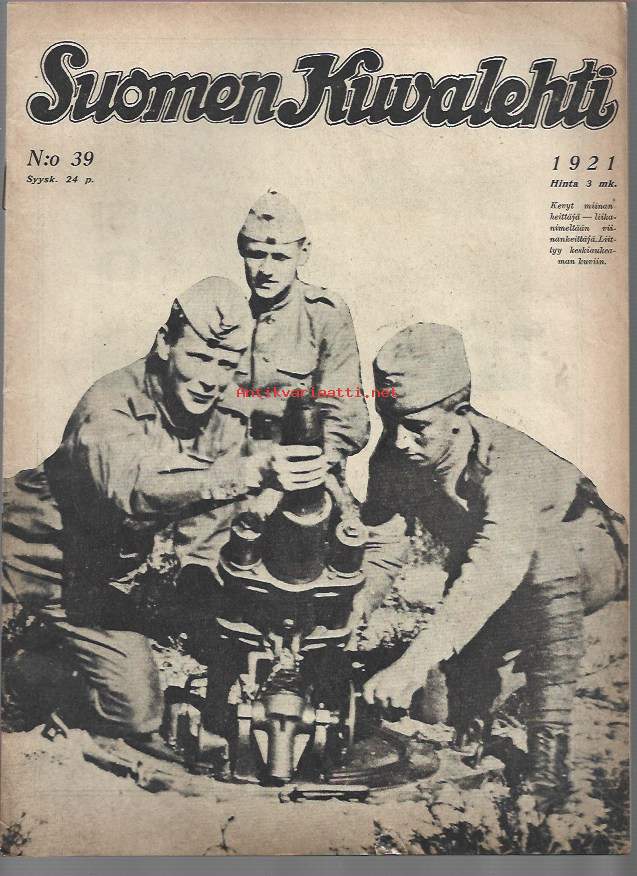 Suomen Kuvalehti 1921 nr 39, kansikuva Kevyt miinan hettäjä, Ensimmäiset kauppa- ja teollisuuspäivät, Venäjän suurin runoilija kuollut nälkään, Muotokuva, ym.