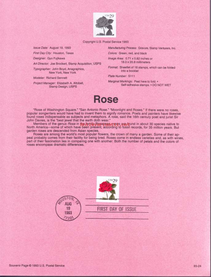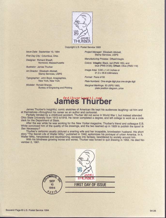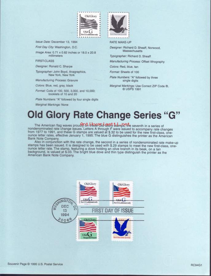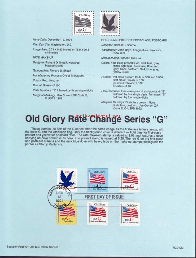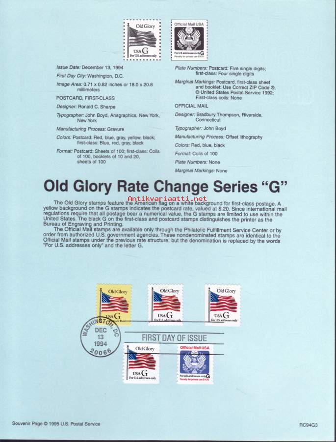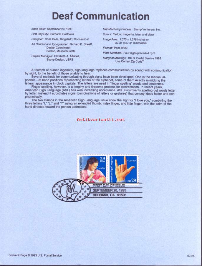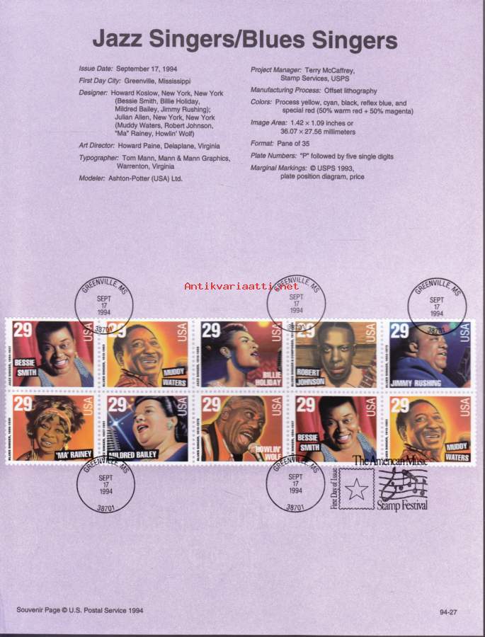 USA - Filatelia - 10 kpl ensipäiväleimattuja (FDC) valmiita kokoelmasivuja, joissa julkaisutiedot postimerkeistä. 1993-1994.