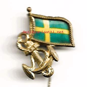 Ruotsin lippu ja ankkuri.- neulamerkki rintamerkki