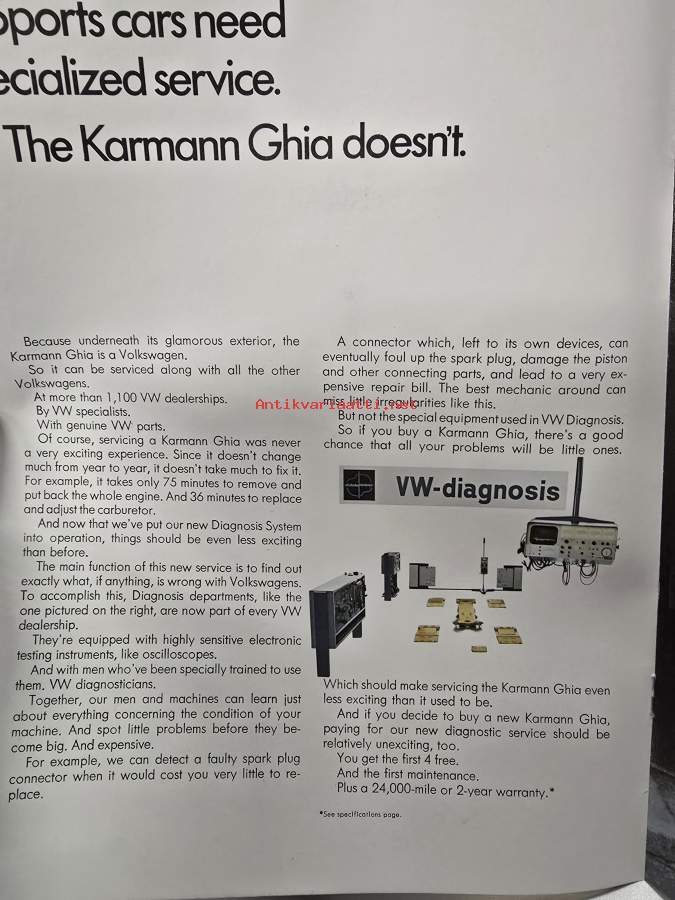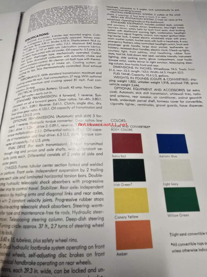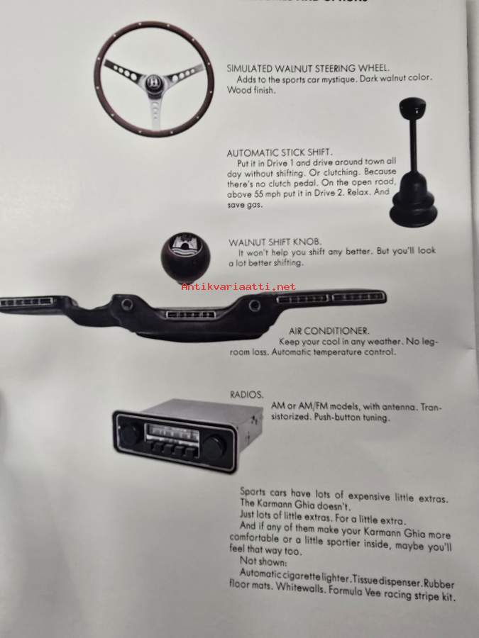 VW kupla ja karmann ghia 8, 1958 myyntiesite.