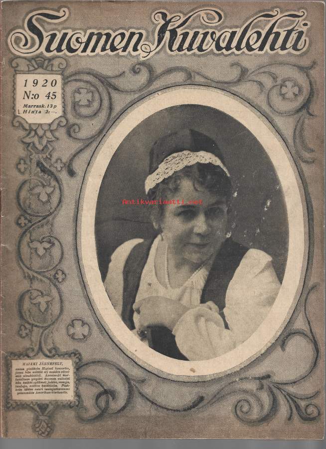 Suomen Kuvalehti 1920 nr 45 / Maikki Järnefelt, Tokio, Vilho Sjöström, Viron raha, teatteri lasten kasvattajana, muotia, veljeshaudat, Vapaussota