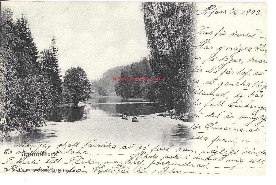 Åminnefors - paikkakuntapostikortti postikortti kulkenut 1903 merkki pois