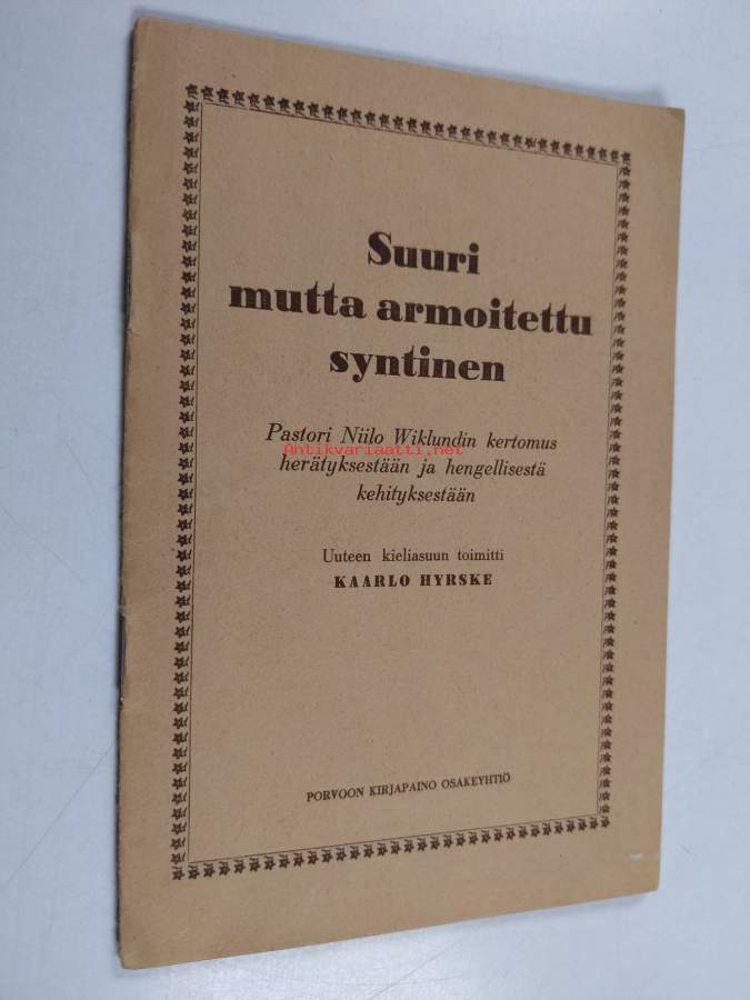 Suuri mutta armoitettu syntinen : Niilo Wiklundin kertomus herätyksestään ja hengellisestä kehityksestään