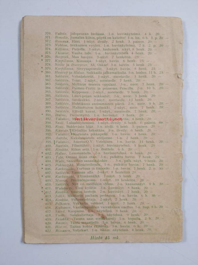 Sarja: Kariston seuranäytelmiä 537; Seuranäytelmiä 537